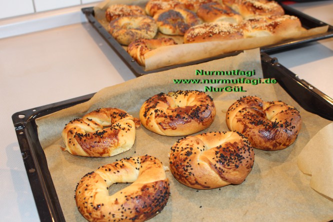 Yapilisi: Mayayi ilik suda eritin… makine varsa makineye bütün malzemeleri ekleyip hamur yogurma ayarinda yogurun… Makine yoksa normal derin bir kabin icersine bütün malzemeleri alalim yumusacik hamur olana kadar pürüzsüz bir hamur elde edelim… kapagini kapatalim, hamuru iki-üc katina gelene kadar mayalayalim…