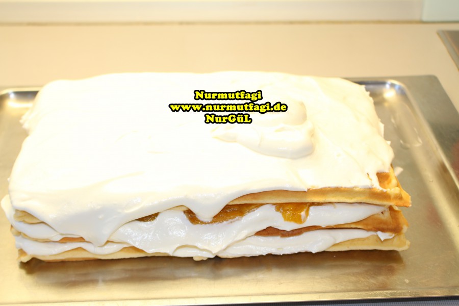 Yapilisi:facebook sayfamda canli yayinda waffle yaptim, geri kalan waffeli pasta yaparak degerlendirdim nefis bir pasta ortaya cikti..