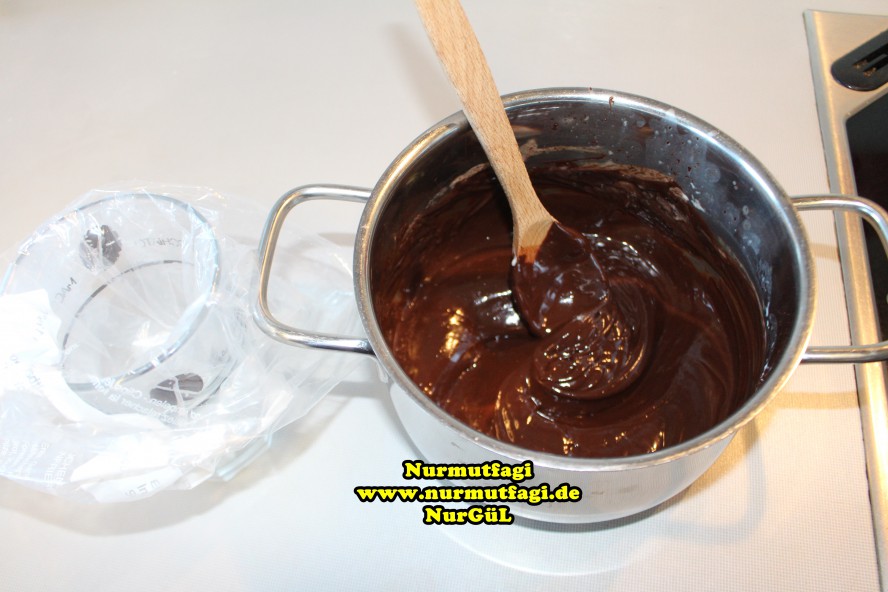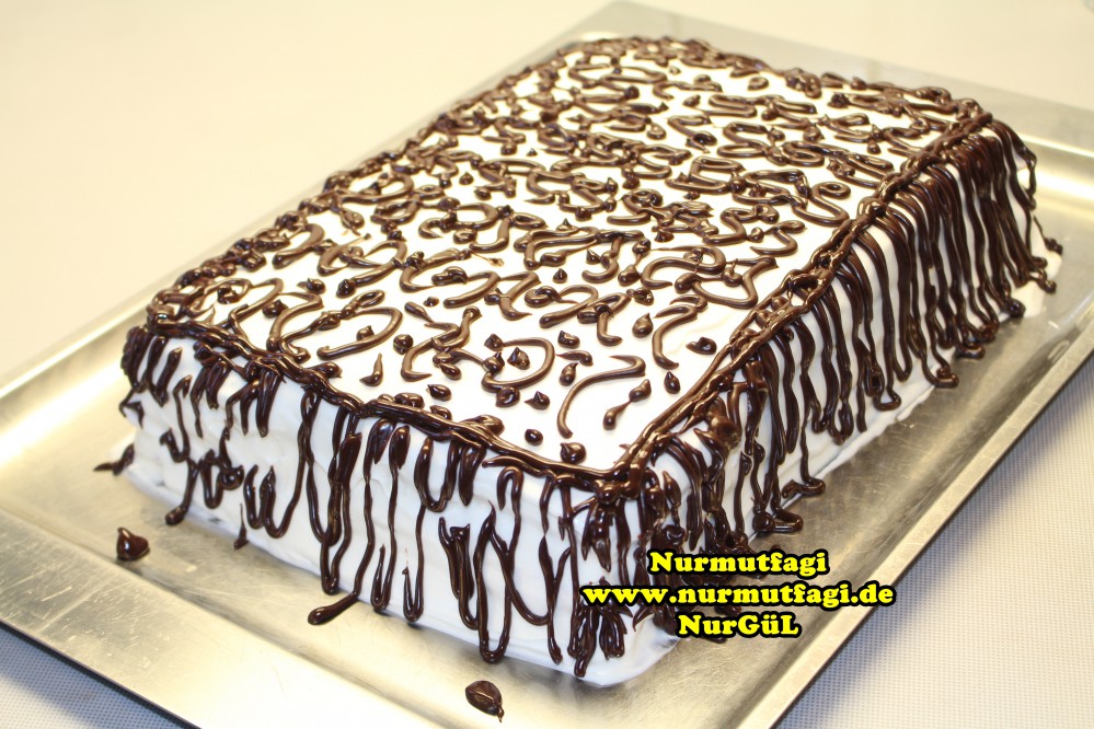 ganaj sosu yapilisi: kremayi kaynatip ocaktan alalim parcalara ayirdigimiz bitter cikolatayi ekleyip karistirarak eritelim.. ilidiktan sonra buzluk poseti veya pasta krema torbasina ince delikli basliktan takip süsleyelim… pastamiz hazirdir, buzdolabinda saklayin. afiyet olsun