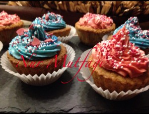 Oda sicakliginda tereyagini sekerle krem kivamina gelene kadar cirpin labne (mascarpone) ekleyin karistirin. karisimi 3 ayri kaba paylastirin her karisima 1-2 tatli kasigi mavi kirmiizi gida boyasi ekleyip cirpin. cikilotali yapmak istiyorsaniz 1-2 yemek kasigi kakao döküp cirpin. Sıkma torbasina alin ve cupcakeslerinizi süsleyin.. afiyet olsun…