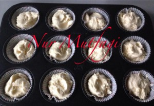 Yapilisi: oda sicakliginda tereyagini sekerle krem olana kadar cirpin. ayri bir kapta un ve kabartmatozunu karistirin. bu karisimdan 2 yemek kasigi tereyag karisimina ekleyip cirpin 1 yumurtayi kirip devam karistirin tekrar 2 yemek kasigi un ilave edip cirpin ve diger yumurtayida kirip devam cirpin en son kalan unun hepsini ilave edip güzelce cirpin. kaliblara birer kasik dökün isinmis firinda 170-180 derecede 25-30 dk pisirin.