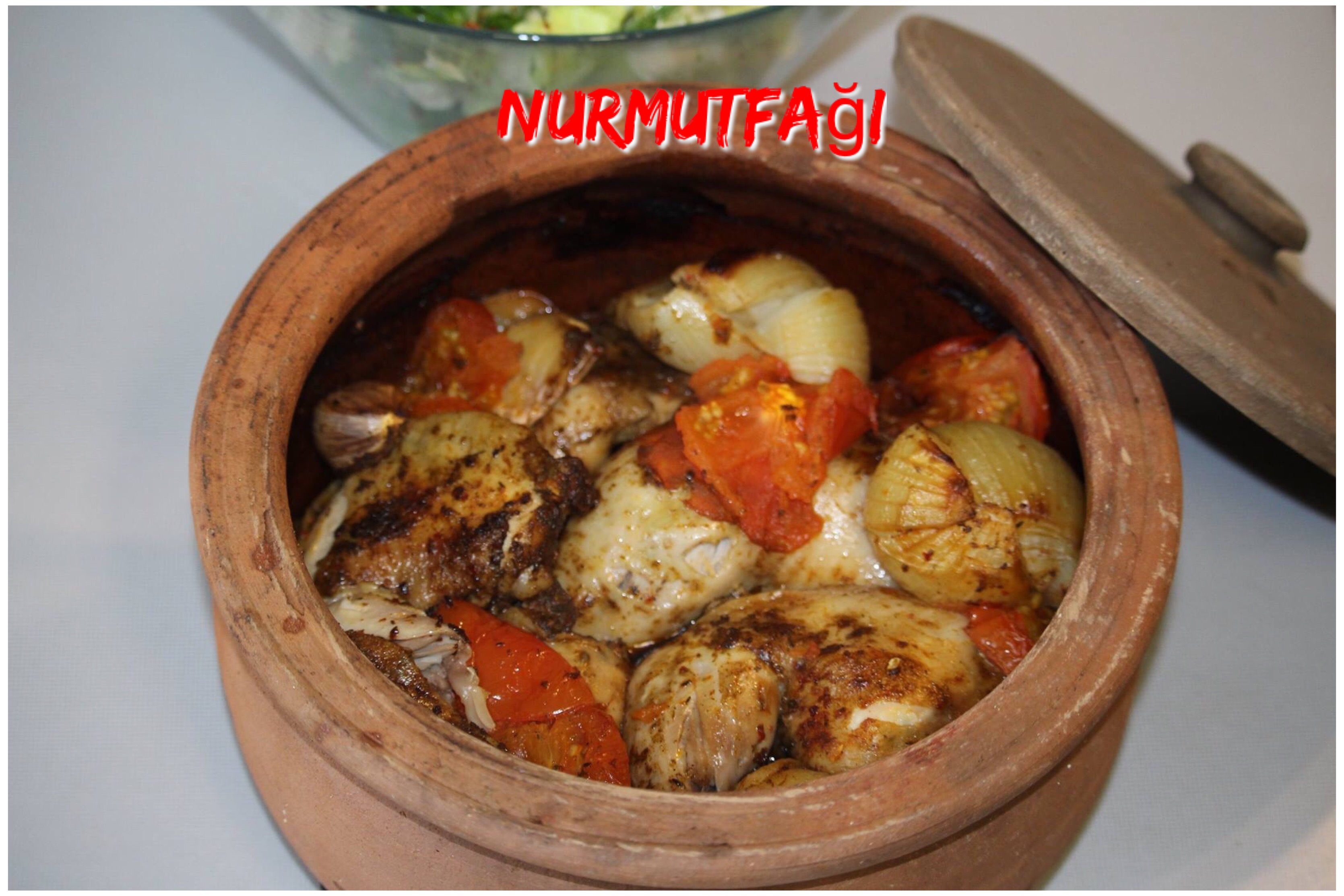 Yapılışı: güveç tencereye tavuk Buda’larını yerleştirelim.. üzerine baharatları döküp 1-2 kaşık sıvıyağ ile ovalım.. soğanların kavuğunu soyup tüm şekilde 4 e kesip yerleştirelim… sarımsakları, tereyağ parçalarını ve domates dilimlerinizde tenceremize yerleştirip yağlı kağıt İLE üzerini KAPATALIM..güveç tenceremizin kapağınıda kapatıp önceden. ISINMIŞ 175 derece fırında 1-1,5 saat arası PİŞİRELİM. Yağlı kağıdı çıkartıp normal kapağını kapatıp tekrar dereceyi 220 dereceye artırarak 30-40 dk pişirelim.. miss gibi kokusuyla evi güveç tavuk sarmış kebabımız hazırdır.. yumuşacık ve normal fırında veya haşlama yapılan tavuktan bin kat daha lezzette güveç tavuk kebabımız servise hazırdır.. yanına pilav kızartılmış patates, bol yeşillikli salata, ayran, turşu çeşitleri herşey çok yakışır 😊😍lezzetinden dolayı bağımlılık yapabilir 😊😋❤🍗