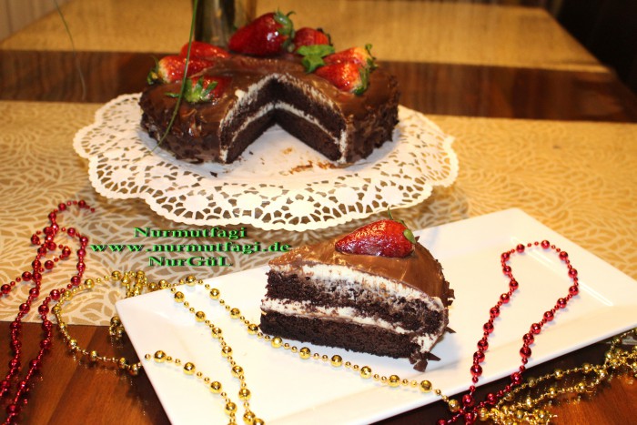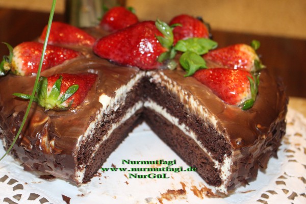 Pandispanyayi ortadan ikiye bölelim… ilk katina ganaj sosumuzdan heryerine 3-4 yemek kasigi yayalim… üzerine kremsantili kremanin yarisina yakin esit sekil sürelim, ikinci kapagini kapatalim ve heryerini kremsanti krema ile kaplayalim… onun üzerine geri kalan ganaj sosu yaklasik yarim cay bardagi  süt kreamasi ile actim ve heryerine esit gelicek sekilde sürdüm.. meyve jölesini paketine göre hazirladim… meyve jölesine batirdigim cilek parcalarini pastanin üzerine yerlestirdim, kenarlarini cikolata kiriklari ile süsleyip servis ettim… afiyet olsun.. videolu tarifimi izlemek icin youtube kanalima lütfen abone olunuz youtube linkim https://www.youtube.com/channel/UCQrpJTkGy_STsLsrfi5A1Uw