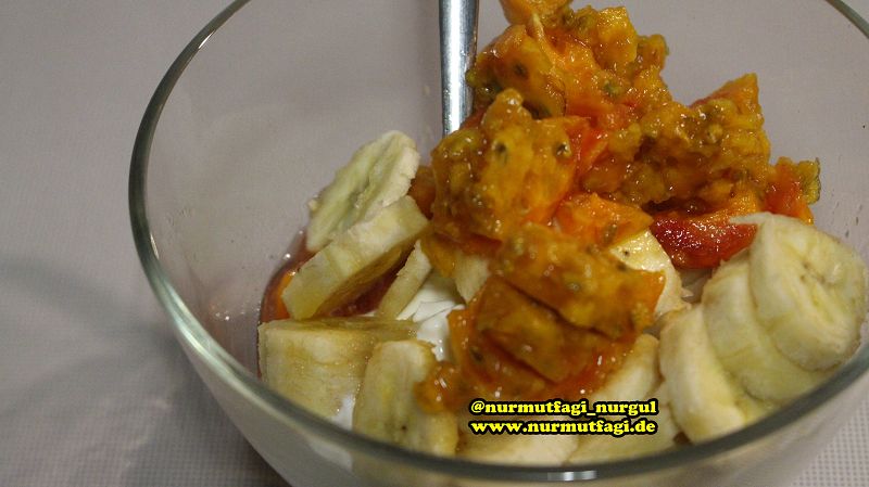 Kaktüs incirini soyduktan sonra, kücük dograyalim, muzuda dograyalim, tabagi yogurt ve dogradigimiz meyveleri koyalim, üzüm ve istediginiz meyvelerdende katabilirsiniz. hepsini güzelce karistiralim.. tadi az gelirse bal veya herhangibir recel ile tatlandirabilirsiniz. ama gerek kalmiyor meyvelerin kendi tadi yeterli geliyor.. Kaktüs incirini bu sekilde yedim inanilmaz güzel bir meyveli yogurt oldu, exotik meyve aromali bir tat elde ettim. sizde kaktüs inciri benim gibi ilk yiyenlerdenseniz bu sekilde tüketebilirsiniz. icinin cekirdekleri ile birlikte yeniliyor. cikartmayin 🙂 zor olsada faydalari icin yutun gitsin 🙂