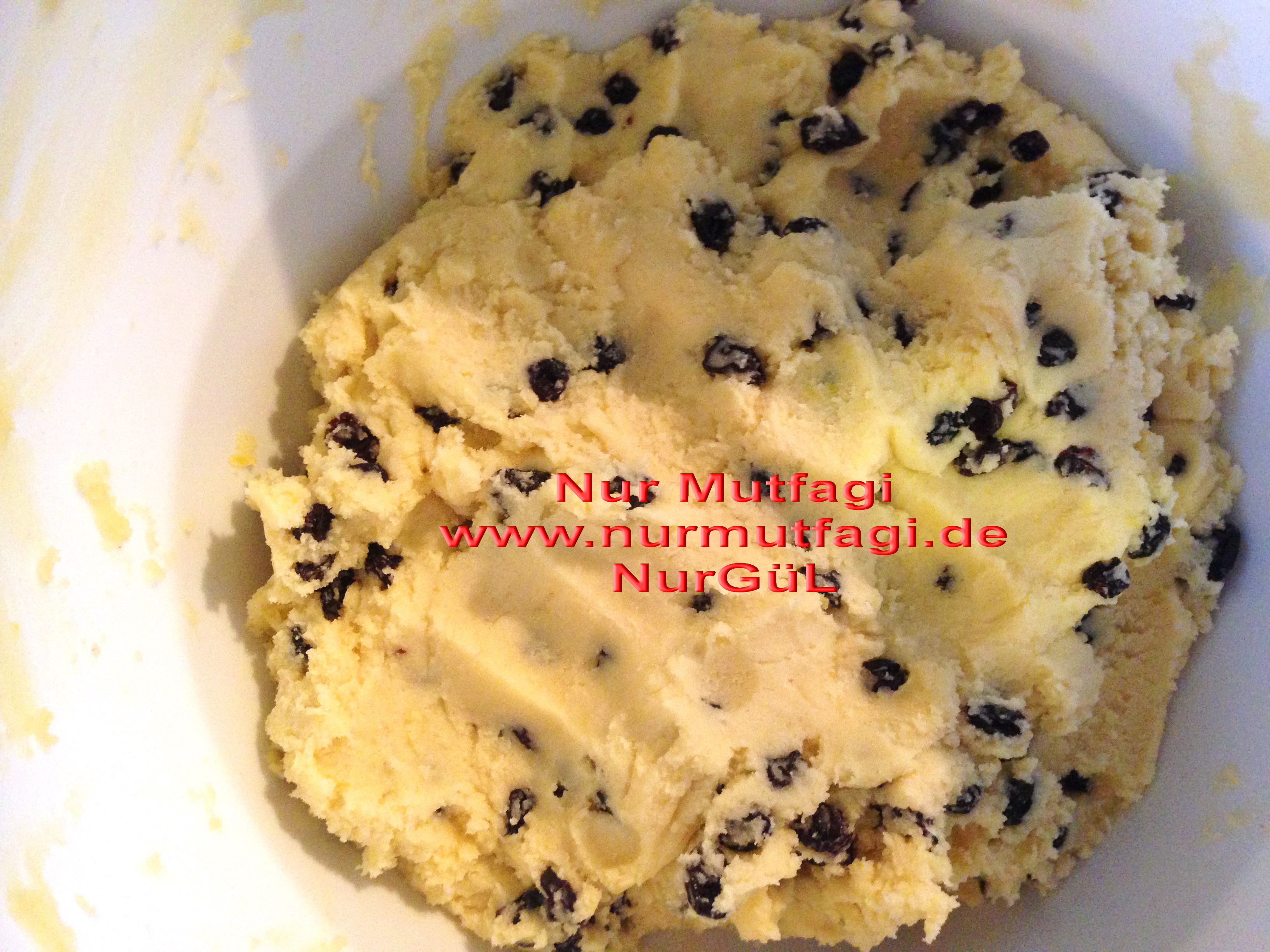 yapilisi: Bir kabin icersine yumurtayi kirin, oda sicakligi tereyagini ve diger bütün malzemeleri ekleyip  yogrulur.   Ister kalipla ister elinizle daire seklinde yuvarlak form verilir  yagli kagit koyulmus firin tepsisine dizilir önceden isinmis firinda 160 – 170 derecede renk alana kadar pisirin. afiyet olsun… buzluguna bir miktar atip misafirleriniz geldiginde ikram edebilirsiniz…