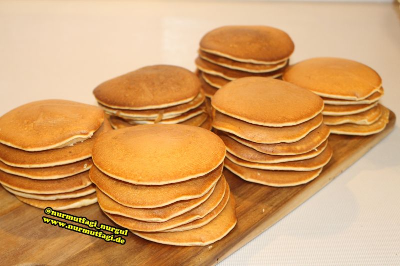 yapilisi: tüm malzemeleri miksere koydum ve 4-5 dakika cirptim.. yogun kivamda bir hamur elde ettim.. silex tavayi isittim, sos kepcesi dolusu hamurdan tavaya ortadan döktüm, orta ateste üzeri göz göz olunca cevirdim.. silex tavada bir anda 12 tane pankek pisiyor cok cabuk bitiyor 🙂 normal teflon tavadada ayni sekilde isitin orta ateste birbirine degmeyecek sekilde 3-4 tane hamurdan dökerek pisirin. üzerine muz, putrasekeri, bir kasik bal gezdirdim bir cimdikte tarcin serperek servis yaptim.. afiyet olsun