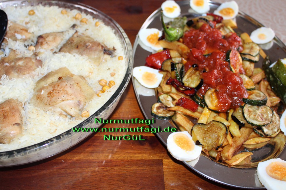 Yapilisi: tavuk butlarini inciklerinden kesip ikiye ayirin… düdüklü tencereye 1,5 litre su koyup 15 dakika haslayin… pirincleri yikayin, firin tepsinize tereyagini eritin, tereyaginda pirinci kavurun, haslanmis nohutu ekleyip karistirin ocaktan alip tavuksuyunu dökün tuz ve karabiber ilave edin, tavuk budlarini tepsiye yerlestirin, budlarin renk almasi icin üzerine yarim limon suyunu skin… önceden isinmis firinda 190-200 derecede suyunu cekene kadar pisirin… bazi pirincler daha cok suya ihtiyaci olur eger size hala pirincler diri gelirse bir bardak daha etsuyu ilave edip firinda suyunu cekene kadar pisirin… yaninda yogurt salata veya karisik kizartma 🙂 afiyet olsun…