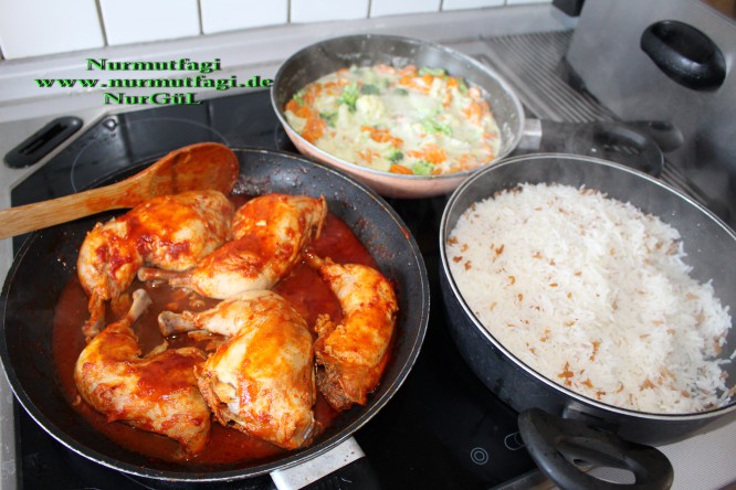 Pirinc pilavi esliginde sebze ve salcali tavuk budlarimiz servise hazirdir… afiyet olsun