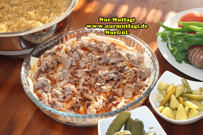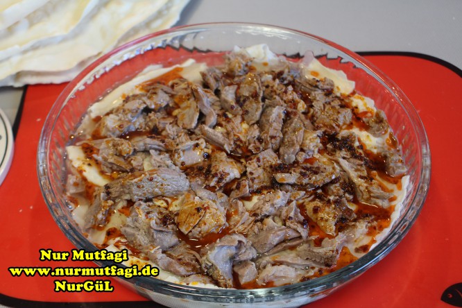 Yapilisi: kuru lavas ekmegini (sebiti) bir borcamin icine gelisi güzel ufaltalim.. üzerine 6-8 kepce sicak et suyunu dökelim ve suyunu cekip yumusamasi icin birkac dk bekleyelim, bu esnada etleri didelim, ufalttigimiz kuzu etini ilattigimiz kuru ekmegin üzerine bolca serpelim… tereyagini siviyag ile kizdiralim karabiber, pulbiber ve kirmizi tozbiber ekleyip kokusu cikana kadar yakalim, bu sosdan etlerin üzerine 4-5 yemek kasigi dökelim, pilav tursu, yogurt esliginde servise hazirdir.. afiyet olsun