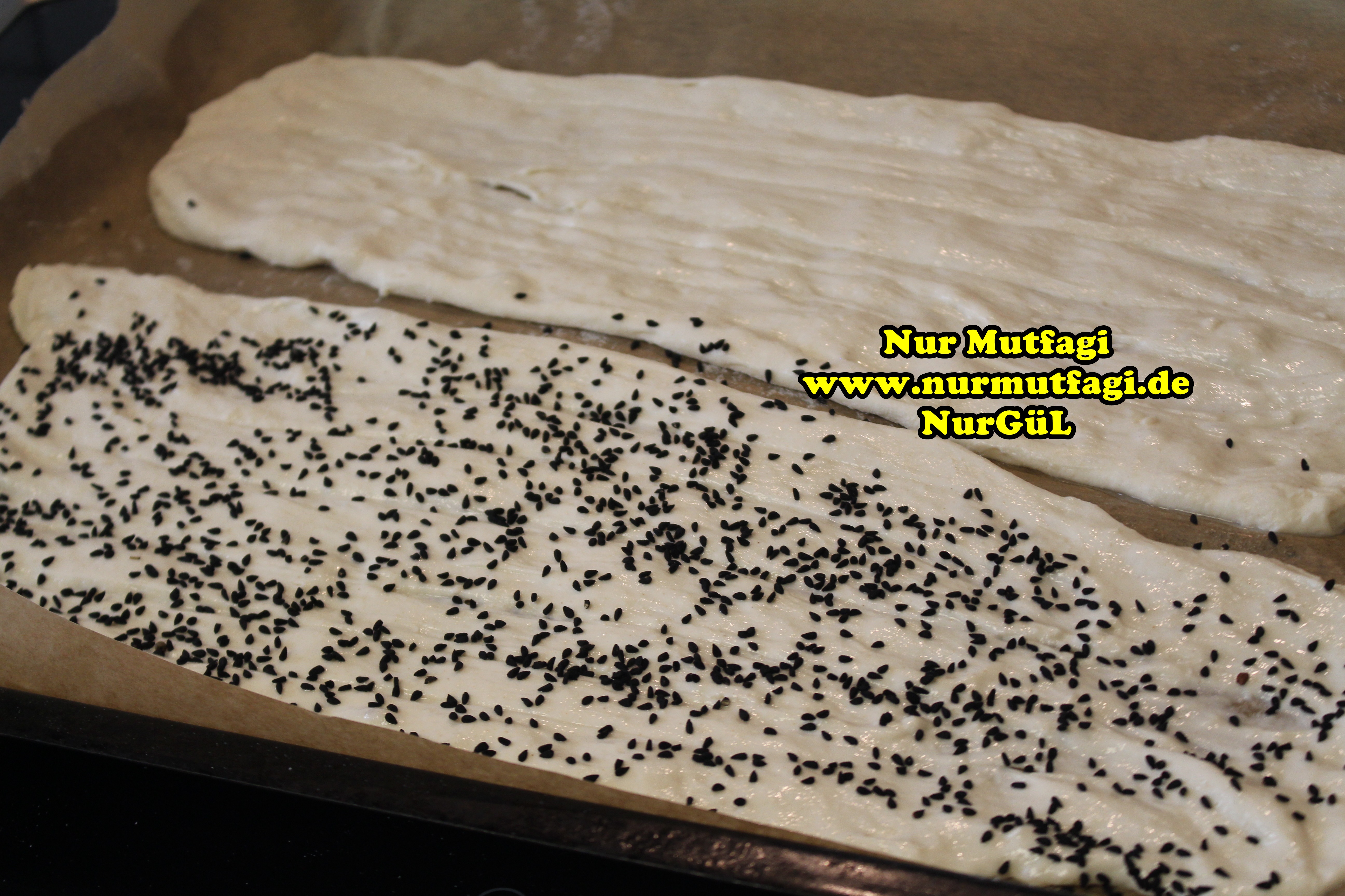 Yapilisi: mayayi suda eritelim, tuz ve unu ilave edip mutfak sefinizde veya hamur yogurma makinesinde veya elimizle hamuru yoguralim.. strec folye üzerien kapatalim bir saat 3-4 katina gelene kadar bekleyelim.. 400 gr. büyüklügünde beze yapalim,( NOT: 400 gr bezeler büyük geliyor siz 200 gr yaparak actiginizda kesmeden firin tepsisine yerlestirebilirsiniz, diger türlü sigmiyor ve ortadan kesmemiz gerekiyor. ) beze kurumasin diye üzerine kagit havlu koyup elimizle islatalim, bu sekilde 30 dk daha bekletelim… tezgaha un serpelim, hamuru elimizle biraz büyültelim, sonra elimizi islatarak sekil verelim, videoyu izleyerek nasil yapildigini izleyebilirsiniz.tepsiye yagli kagit koyalim biraz un serpelim ve ekmegimiz firin tepsisine sigmayacagi icin keselim ve tepsiye yerlestirelim.. arzuya göre cörek otu veya susam serpelim.. firini önce 300 derece isitalim, sonra 250 dereceye indirip alt üst ayarda pidemiz renk alana kadar pisirelim.. pistikten sonra üzerine tereyagi sürelim, hafif nemli havlu örtelim, yumusamasini saglayalim.. afiyet olsun