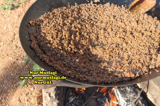 2. Asama: karacigeri, akcigeri, kiymalik eti hepsini varsa et cekme makinenizin kiyma ayarinda cekin yoksa kasaba götürüp kasapta kiyma ayarinda hepsini cektirin… saca cektigimiz bütün malzemeleri alalim ve kavurmaya birakalim… dibinin tutmamasi icin önceden yaptigimiz donyagini ekleyelim ve sürekli arada karistirarak pisirelim… suyunu salan ve ceken kavurmamiza ezilmis sarimsaklari ve damak tadiniza göre bolca baharatlari atalim tekrar kavuralim… kavurma islemimiz bitince tepsilere paylastiralim donunca ister kesip yarisini dibpirizde saklayabilirsiniz ister buzdolabinda… yemeden önce bir parca teflon tavaya alinir ve isitilir sicak sicak mayali ekmegin arasina arzuya göre sogan, biber dograyarak sikmasi skilir ve afiyetle cay ile yenilir…afiyet olsun