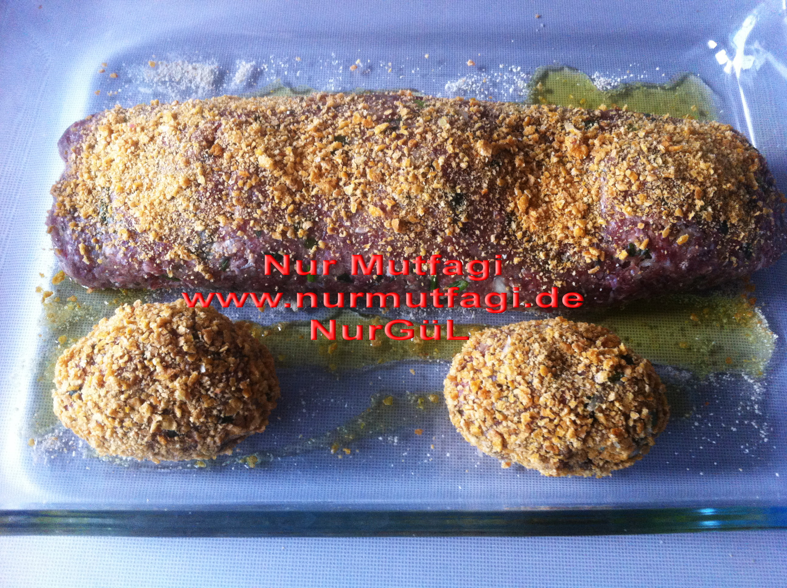Dalyan köfte: Soğani mixserde kücültün, maydonozu dograyin… 3 tane Yumurtayi kati olarak haslayin… Kıymaları bir kaba alıp yoğurun. ufalanmis Ekmek içi, maydanoz, soğan, kimyon, 1 yumurta, tuz ve karabiberi ilave edip yoğurun… tezgaha ince uzun dikdörtgen strec folye koyun, Köfte harcını strec folyenin üzerine alıp dikdörtgen şeklinde açın. Ortasına haşlanmış yumurta havuc ve bezelye yerleştirin. Rulo şeklinde sarin. Fırın kabına biraz zeytinyagi ve galete unu serip köfteyi üzerine yerleştirin. istege bagli üzerine mikserden gecirilmis misir gevregi döküp Önceden ısıtılmış 170 dereceye fırında pişirin.