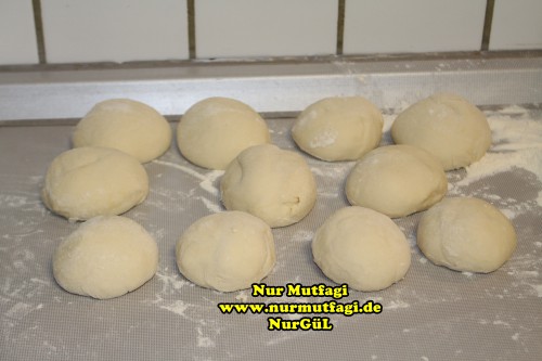 Hamur: 1 kg un 2,5 bardak ilik su, tuz, 4 tatli kasigi seker, 3 yemek kasigi siviyag hepsini yogur kücük bezeler yapip tabak büyüklügünde ac isinmis tavada arkasini önünü pisir.