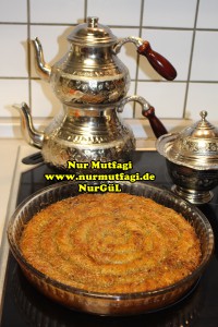 Borcam tepsisinin altini bolca bolca yaglayalim, ve rulo haline getirdigimiz kadayifi tepsinin ortasindan baslayarak saralim… ayni islemi tepsimiz dolana kadar ugulayalim…