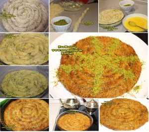 Yapilisi: Önce fistigi mikserde cok un olmadan ufaltalim.. tezgaha taze kadayifi acalim ince uzun bir miktar resimde gördügünüz gibi serelim üzerine cekilmis fistik icini serpelim ve ucundan baslayarak saralim, sarma islemini lütfen videoyu izleyiniz…