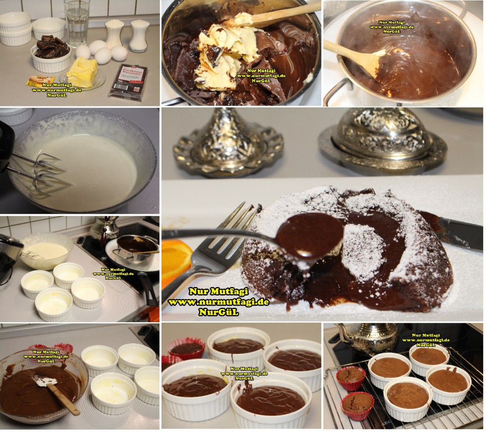 Yapilisi: Benmari usulu cikolatayi tereyagi ile birlikte eritelim… yumurtayi seker ile birlikte krema kivamina gelene kadar cirpalim.. vanilyayi ekleyip devam cirpalim, unu eleyerek ekleyip cirpmaya devam edelim… erittigimiz cikolatayi yavas yavas ekleyerek cirpalim… kaliplari yaglayip unlayalim, esit sekilde sufle hamurunu kaliplara paylastiralim, önceden isinmis 200 derece firinda 7 dakika pisirelim, firindan cikartalim, ilk sicagi cikan iliyan sufleyi servis tabagina ters cevirelim üzerine putra sekeri serpelim arzuya göre süsleyip servis yapalim. afiyet olsun