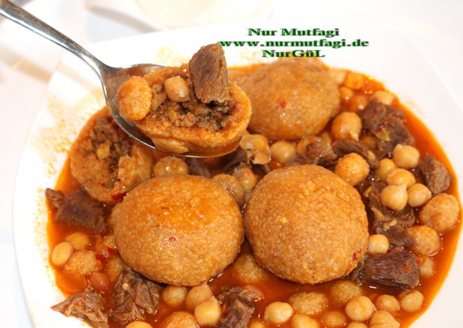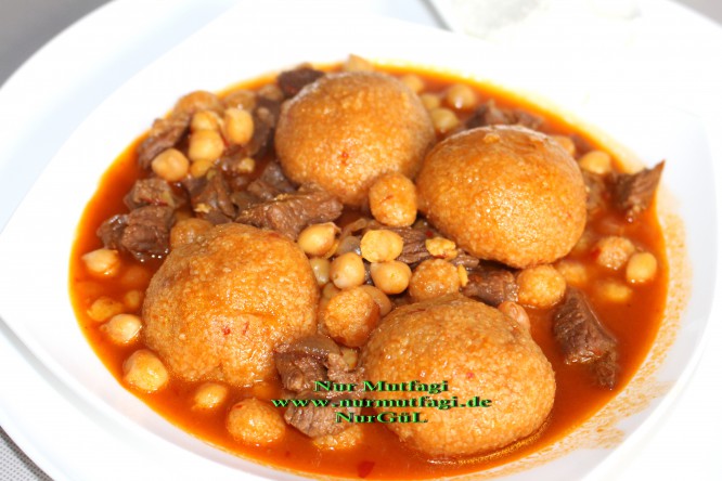haslanan etimizin icine nohutlari ilave edelim orta ateste 3-5 dakika kaynamaya birakalim… kücük topalaklari ekleyip yakalsik 3 dakika kaynatalim, en son olarak  icli köfteyide ilave edelim, yaklasik 5-8 dakika orta ateste kaynatalim… pisen yemegimizi ocaktan alip sicak sicak yemek icin servise hazirdir…afiyet olsun.