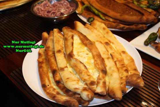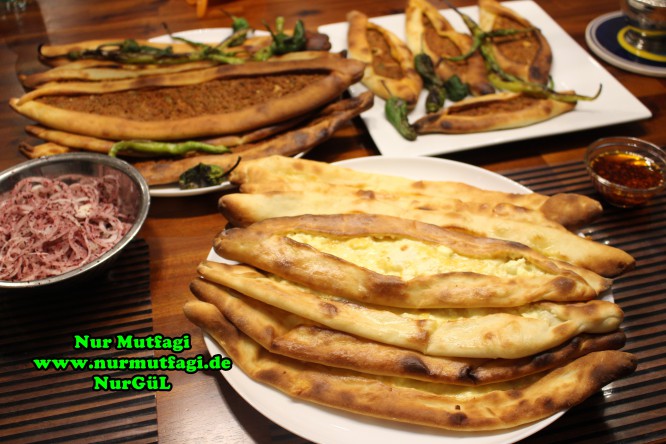 hamurdan elma büyüklügünde bezeler yapalim ince uzunluguna acalim… ic malzemeyi önceden hazirlayalim, beyaz kalip peyniri ovalim, kasar peyniri rendeleyelim ve karitiralim… actigimiz yufkalarin üzerine 2 kasik kadar koyup dagitalim, pidelerin kenarlarini kapatalim kayik sekli verelim… yagli kagit koydugumuz firin tepsisine dizelim… ayni islemi hamurumuz ve malzememiz bitene kadar uygulayalim… önceden isinmis 300 derece firinda alt üst kizartma ayarinda pidelerimiz renk alana kadar pisirelim, bu arada ikinci tepsiyi koyarsaniz tepsilerin yerini alt üst degistirerek alt ve üstlerin daha güzel renk almasini saglayalim… firindan cikan pidelerin kenarlarini tereyagi ile yaglayalim… sicak servis yapalim… afiyet olsun