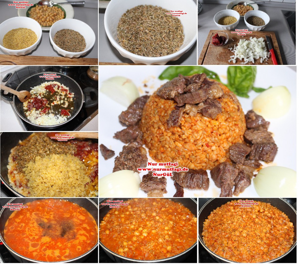 Etli Firik Pilavi tarifini ve yapilis videomu görmek icin tiklayin http://www.nurmutfagi.de/firik-pilavi-tarifi-gaziantep/