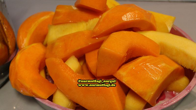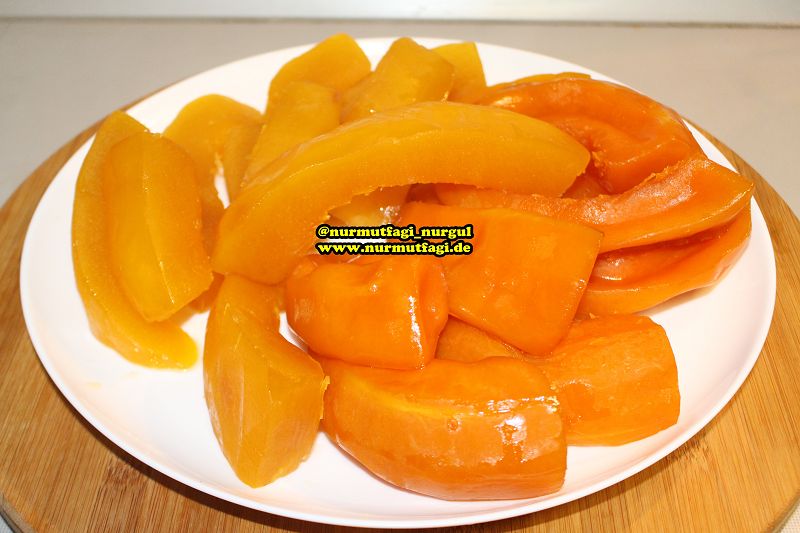 not: Pisme süresi sizin kullandiginiz kabagin cokluk ve azligina göre degisebilir, cok yaptiginizda kabak tatlinizi cam kavanozlara koyup konserve gibi sicak halde kapagini kapatip saklayabilirsiniz. istediginiz zaman elinizin altina cikartip servis edebilirsiniz.