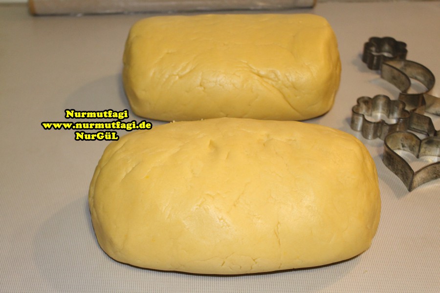Yapılışı: derin bir kaba yumurtayı, şekeri, oda sıcaklığında ufaltılmış yağı, VANİLYAYI, kabartmatozunu, limon kabuğu rendesini ekleyip karıştıralım.. Unu kontrollü bir şekilde ekleyelim yaklaşık 1600 gr un yedi benim hamur. Siz kontrollü şekilde ekleyip yoğurun, ele yapışmayan yumuşak bir hamur elde edeceğiz. Bu hamurun malzemesi yaklaşık 6-7 tepsiliktir. Siz malzemeyi yarıya indirerek yapabilirsiniz. genel kurabiye hamuru tarifidir. bu tarife isterseniz kuruyemisler, findik, hindistan cevizi, damla cikolata, üzüm, badem vs katarak degisik tadda degisik lezzette kurabiyeler yapabilirsiniz..