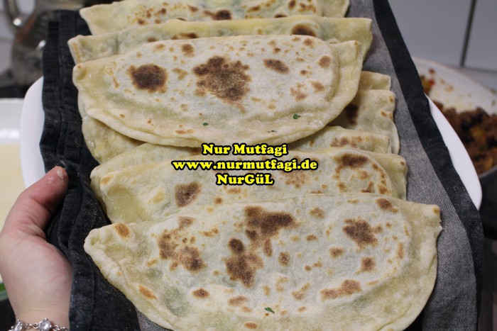 Yapilisi: Bütün malzemeleri ben ekmek makinesinde yoguruyorum varsa makinede yoksa elinizle yogurup bi yarim saat dinlendirin, mandalina büyüklügünde bezeler yapip kücük pasta tabagi büyüklügünde acin…ic harcini önceden hazirlayalim: peyniri ovalayalim maydonozu kücük yemeklik dograyalim.. hamurun yarisina 2 yemek kasigi kadar peynirli harctan koyup yarim ay seklinde kaptalim, teflon tavayi ocaga koyup isitalim, gözleme börekleri tavaya iki tane sigacak sekilde koyalim ve renk alana kadar iki tarafli pisirelim… hamurumuz ve malzememiz bitene kadar ayni islemi görelim… afiyet olsun