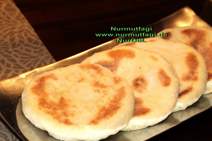 Yapılışı: hamur yoğrulur 2-3 katina cikana kadar en asa oda sicakliginda 1 saat dinlenmeye bırakılır, elma büyüklüğünde bezeler yapılır, üzeri nemli bir bez ile kapatilir, 10-15 dk kabarması için beklenir, elınizle üzerine bastırarak küçük tabak büyüklüğünde açılır ısınmış tavada orta derecede yavas yavas arkali önlü çevirerek pişirilir… Afiyet olsun