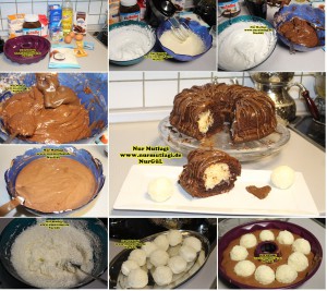 Silikon kalibimizi firca ile yaglayalim.. icine kakaolu hamurun yarisini dökelim yapmis oldugumuz koko toplarini yerlestirelim.. üzerine geri kalan hamuru döküp düzeltelim… önceden isinmis 170 derece firinda yaklasik 50-60 dakika arasi arada kürdan kontrolü ederek pisirelim…oldukca kabariyorlar 🙂 pisen kekimizi firindan cikartalim, ilimasi icin bekleyelim sonra kaliptan dikkatlice cikartalim..