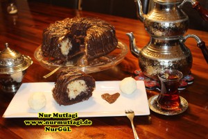 üzerine nutella sos: 3 yemek kasigi nutellayi bir tasin icine koyalim ve mikrodalgada yaklasik 40 saniye isitalim, mikrodalga firin yoksa benmari usulü eritebilirsiniz… eriyen nutellayi bir posetin icine dolduralim ucunu kücük keselim ve süsleyelim… afiyet olsun…