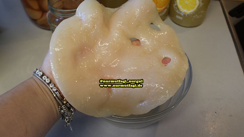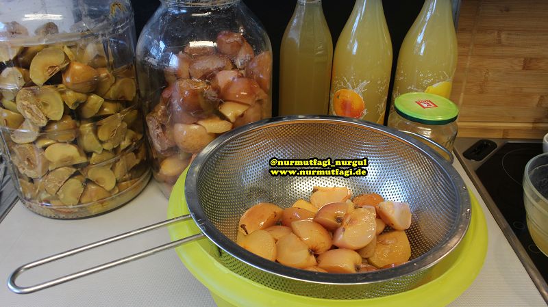 2. asama sirke anasi olduktan sonra süzme islemi: öncelikle üzerinde olusan sirke anasini dikkatli bir sekilde cikartalim. bunu kesinlikle atmiyoruz. bu cok kiymetlidir. bununla tekrar sirke kuracagiz hemde o kadar kolay bir sirke kurumu olacakki size bunu sonraki tarifimde anlaticam.. simdi gelelim sirkemizi süzmeye bir kabin icine süzgec koyalim ve sirkemizi süzelim.. üzerindeki elmalari kompostoya atalim.. süzdügümüz sirkeyi tekrar süzdüm. süzgecin icine temiz bir bez koydum ve elde ettigim sirkemi tekrar bezin üzerine dökerek süzdüm, sirkemi cam kavanozlara doldurdum artik salatalarda, soslarda, tursu yapiminda kullanmak icin en dogal ev yapimi elma sirkem hazirdir. cok keskin bir sirkem oldu. elmanin rengine göre sirkemizin rengide degisiyor cok berrak olmasada harika bir sirkemiz olmustur. simdiden yapacak olanlara kolay gelsin sifa olsun diliyorum. yapilisini sesli anlatimli olarak youtube kanalimda paylastim mutlaka izlemenizi tavsiye ederim.